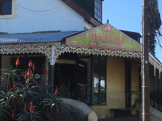 The photo above is of the main road that end in lush, green wheat fields. Helena se Hoekwinkel is at the bottom of this road. To the right you will find the restaurants. We had coffee at The Deli Shed. They make a decent coffee and sells homemade items and freshly baked bread. Their Moorish Mix is a mixture of sundried tomatoes, olives and feta cheese in an olive oil vinaigrette and is absolutely divine. Another popular restaurant is Pepper Tree Art Stable.